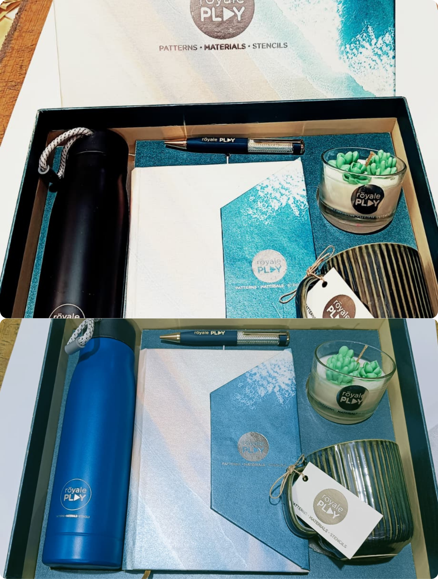 From the sleek matte-finish bottle to the elegant notebook, aromatic candle, and handcrafted mug — every element inside reflects creativity, craftsmanship, and premium design aesthetics.