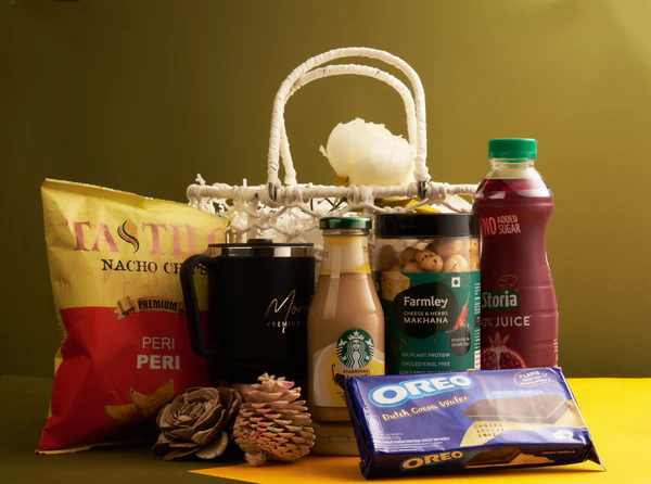 Indulge in a carefully curated selection of premium treats with the Gourmet Delight Basket — a perfect combination of sweet, savory, and refreshing flavors. Designed for food lovers and connoisseurs, this hamper is a tasteful expression of appreciation, ideal for celebrations, corporate events, or personal indulgence.