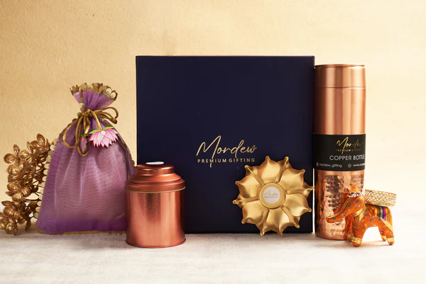 Immerse yourself in the grandeur of tradition and luxury with the Royal Elegance Hamper. This opulent curation is designed for those who appreciate the beauty of fine craftsmanship, cultural heritage, and timeless gifting. A blend of artisanal metals, rich textures, and thoughtful elements, this hamper is perfect for corporate gifting, festive celebrations, or cherished personal occasions. Reusable box size – 12 x 10 x 4 inch.