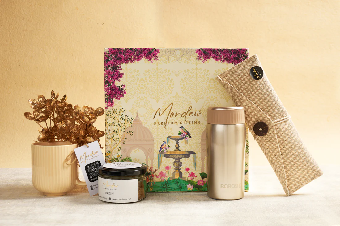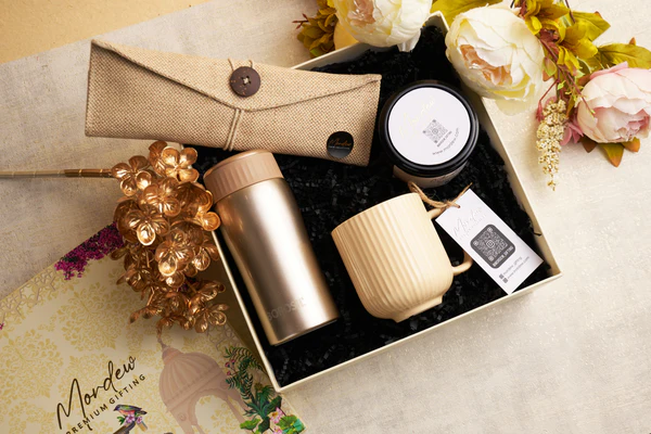 Designed for those who cherish elegance and everyday luxury, the Serene Bliss Hamper brings together thoughtful elements of warmth, wellness, and utility. Encased in an exquisitely designed gift box inspired by traditional Indian artistry, this hamper is a perfect blend of sophistication and functionality—ideal for personal and corporate gifting alike.